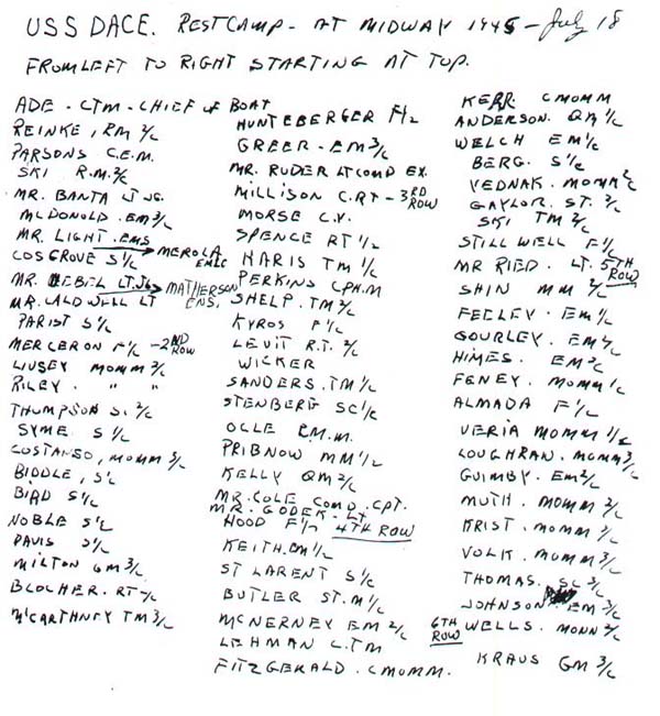 List of USS Dace (SS-247) Crew Members in the photo above.